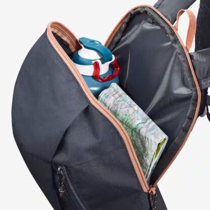 Mochila práctica de senderismo, espalda y tirantes acolchados, con 2 compartimientos el principal y el externo, volumen: 10 litros, peso: 145 g y dimensiones de: 39 x 21 x 12 cm.